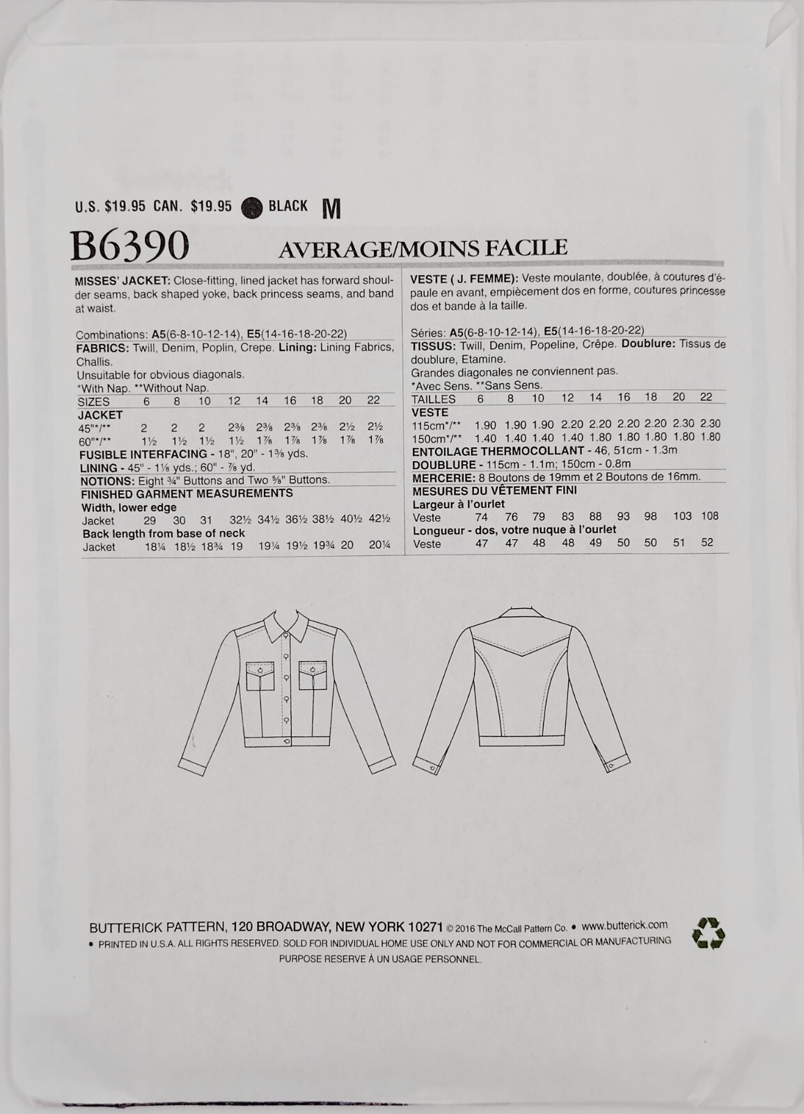 Butterick Patterns By Gertie B6390 Sz 6 14 Misses Lined Denim Jacket Uncut New 31664468035 Ebay